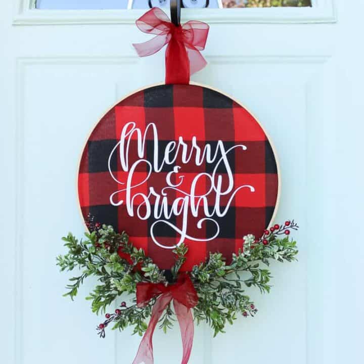 DIY Christmas Buffalo Check Hoop Wreath