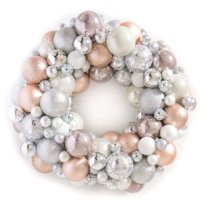 Create a stunning statement piece with a DIY ornament wreath that celebrates the sparkle of the season. Filled with baubles and ornaments, this wreath shines brightly and brings holiday cheer to any door.