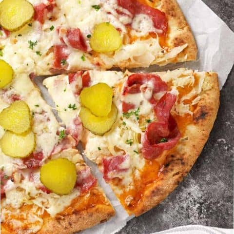 Reuben Pizza is an easy and delicious main course that will satisfy any hungry family. This family-friendly mashup combines all the meaty, cheesy, and tangy flavors of a Reuben sandwich, along with the ease of pizza.