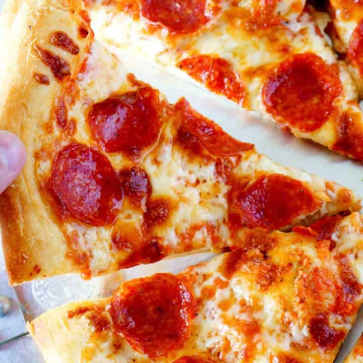 This classic pizza recipe is just as good as any delivery option, and it is so economical to make a gourmet flavor at home. Customize with your favorite toppings.