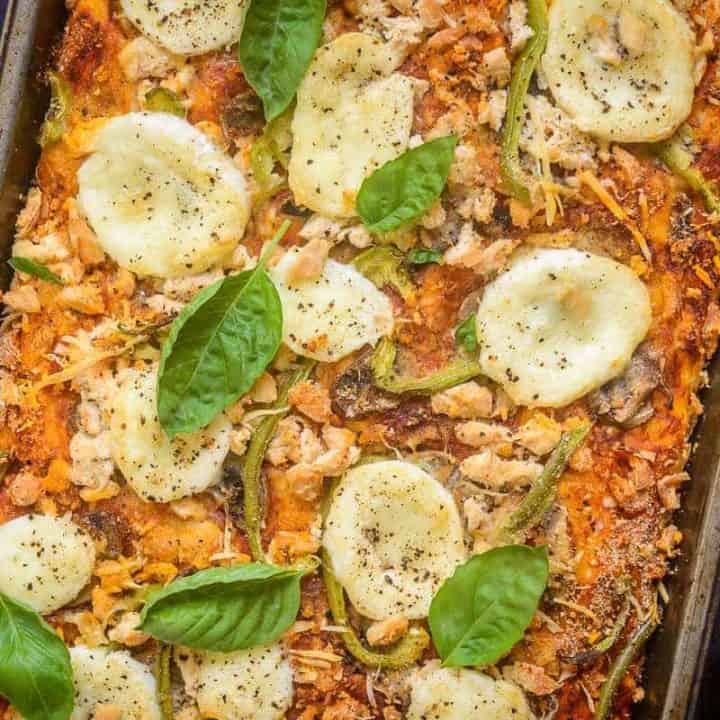 This pizza has all the flavor of a fancy pizza place but is made with budget-friendly ingredients. The results are tasty!