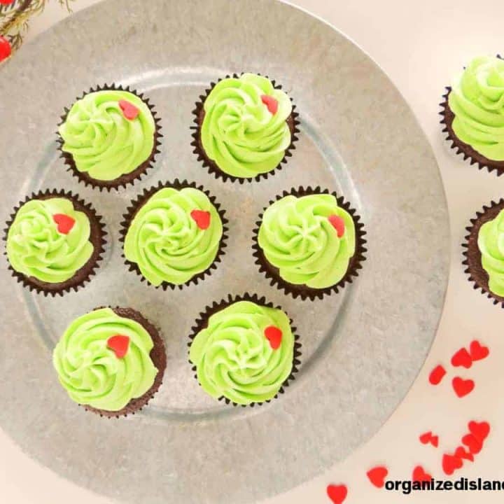 These adorable cupcakes are perfect for any holiday party or as a fun dessert to enjoy while watching the Grinch. The green frosting and candy hearts make them a festive addition to any dessert table.
