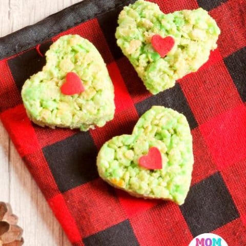 Easy Grinch Rice Krispie Treats (Heart-Shaped)