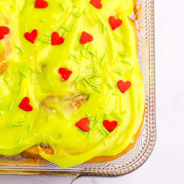 Cinnamon rolls are a classic breakfast option for Christmas morning, and this recipe takes it up a notch with a Grinch-inspired twist. With its green frosting and heart sprinkles, it's sure to be a hit with kids and adults alike.
