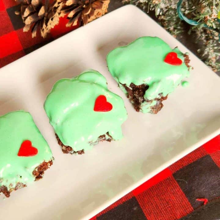 These brownies are a fun and festive way to celebrate the holiday season. The green frosting and candy heart decorations make them a perfect treat for any Grinch-themed party or movie night.