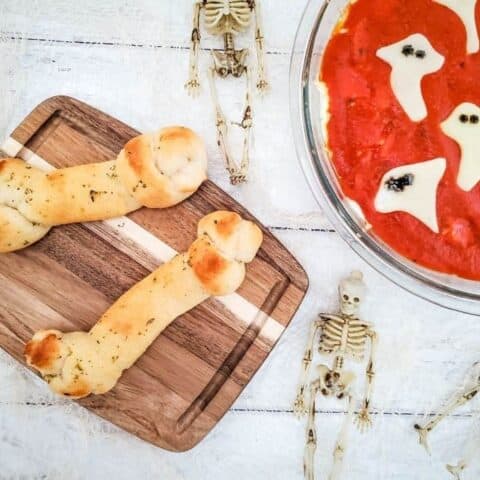 Bone Breadsticks and Ghost Pepperoni Pizza Dip