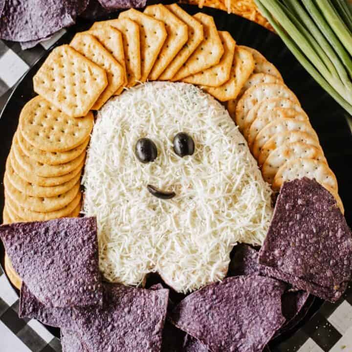 This ghost-shaped cheeseball is so delicious, it’ll disappear before your eyes! Made with creamy cheese and coated in herbs or nuts, this appetizer is as fun to make as it is to eat.