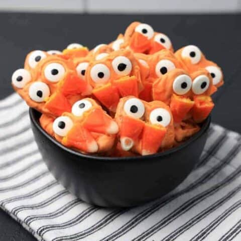 This party mix is packed with sweet and salty snacks, all mixed together and topped with spooky candy eyes. It’s a fun and festive treat that’s perfect for snacking during your Halloween festivities.