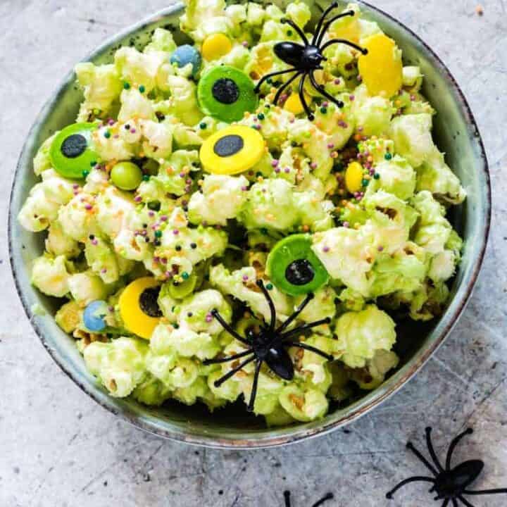 This popcorn is coated in colorful candy and sprinkles, with monster eyes added for a spooky effect. It’s a sweet and salty snack that’s perfect for munching on during a Halloween movie marathon.
