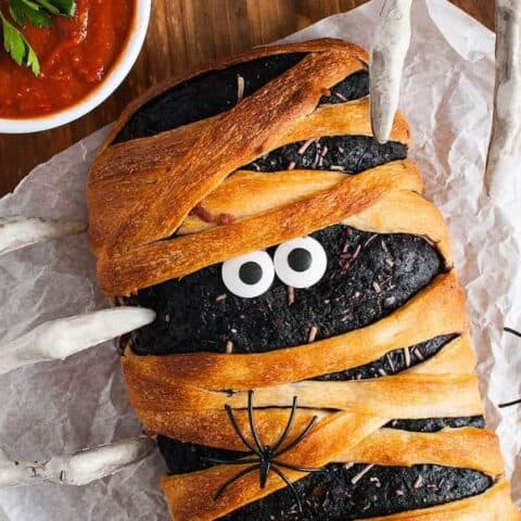 This stromboli is wrapped up like a mummy, with layers of dough and delicious fillings hidden inside. It’s a spooky and satisfying meal that’s perfect for feeding a hungry Halloween crowd.
