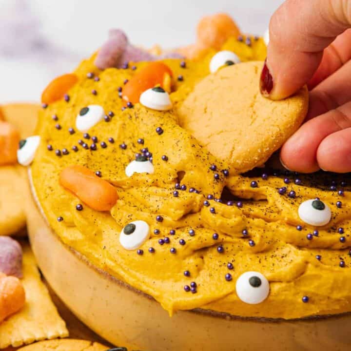 This creamy pumpkin cheesecake dip is rich and flavorful, perfect for dipping cookies, fruit, or graham crackers. With a hint of spice and a festive orange hue, it’s a deliciously sweet addition to your Halloween table.