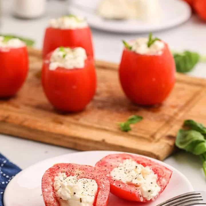 If you’re looking for fresh Italian vegetable dishes, why not try some stuffed tomatoes with fresh burrata? They are healthy, quick, simple, light, colorful, and appetizing.