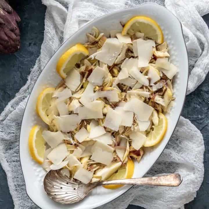 This shaved artichoke salad is the perfect holiday side, dinner appetizer, or healthy lunch. It’s ready in under 20 minutes with 5 ingredients!