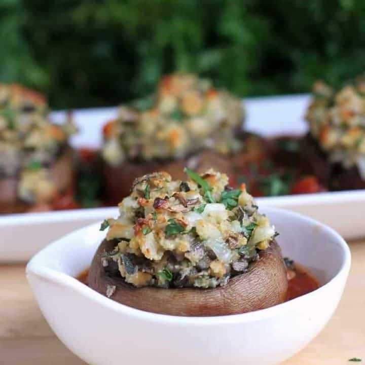 Mushrooms make lovely Italian appetizers, especially when stuffed! All you need is some large white mushrooms, marinara, olive oil, bread crumbs made from a day-old baguette, and a few other pantry staples.