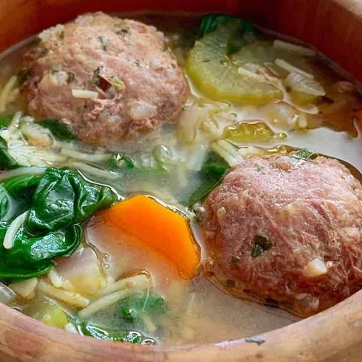 Italian wedding soup is a traditional soup recipe. You will need olive oil, onion, carrots, celery, parsley, basil, broth, meatballs, spinach, and pastina pasta.