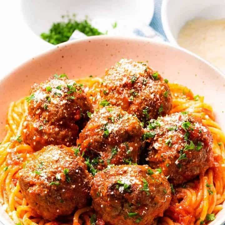 These classic Italian Meatballs will quickly become your family’s new favorite side dish. They are tender meatballs made with ground pork and ground beef, parmesan cheese, garlic, and herbs!