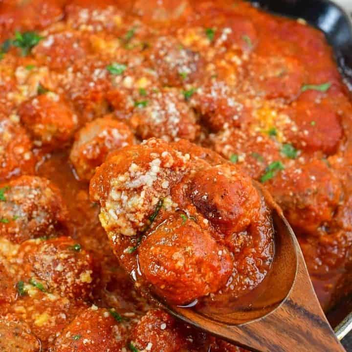 This meatball recipe is stuffed with Italian spices, cheese and topped with sauce. Italian meatballs are the ultimate comfort food and a delicious twist on your favorite traditional meatloaf recipe.