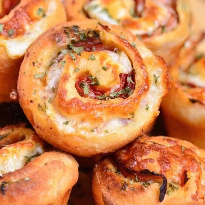 Italian sub pinwheels will be the star of the show at any party. They are simple and scrumptious with ham, salami, pepperoni, herbs, and mozzarella cheese.