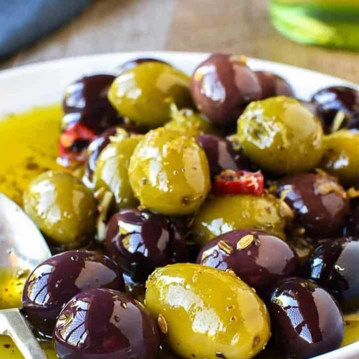 Italian marinated warm olives are a traditional appetizer. Add them to an antipasto plate, a martini, or pop a few before dinner is served.