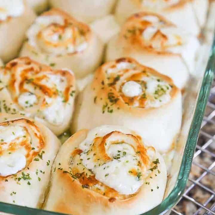 Cheesy garlic rolls are buttery and garlicky versions of a cinnamon roll. Inspired by John’s Pizzeria in New York City’s Garlic Rolls.