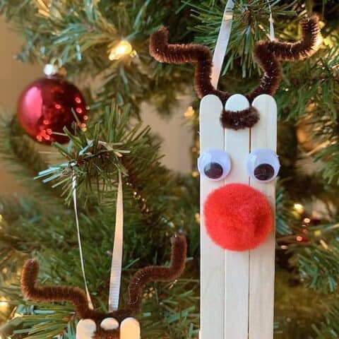 These DIY popsicle stick reindeer ornaments are so easy to make and the perfect craft for your Christmas tree this holiday season