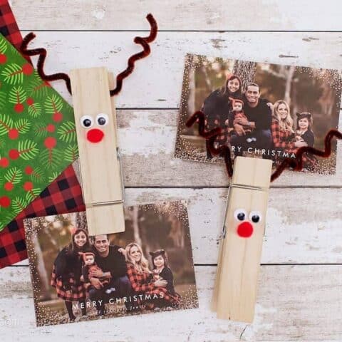 This clothespin reindeer craft is an adorable way to display Christmas cards or can be made into an ornament for the tree!