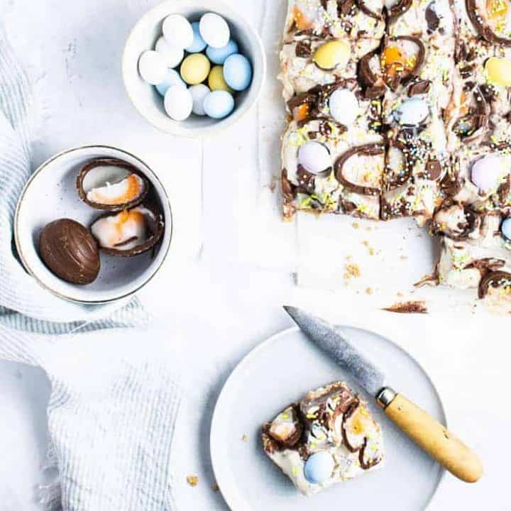 Encased in a biscuit base and topped with even more Easter eggs, this special dessert will please both adults and kids alike.