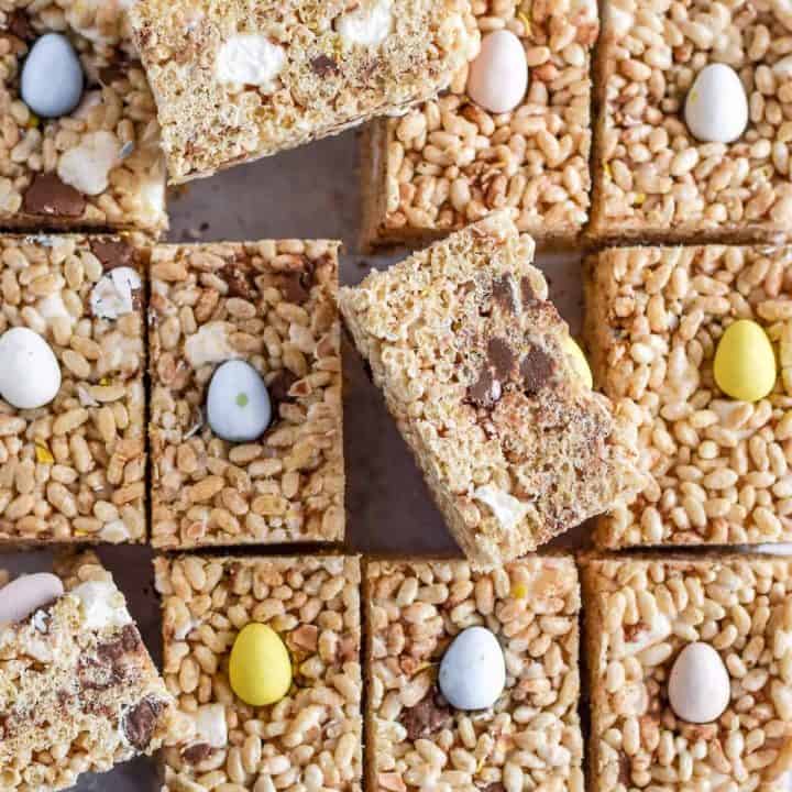 These gluten-free mini egg rice krispie squares are the perfect Easter dessert! Crunchy, chewy, and chocolatey - they're a hit with kids, teens, and adults alike.