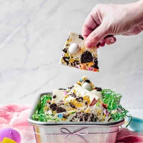 Looking for a super simple and easy, no-bake dessert for Easter? This White Chocolate Oreo Easter Bark checks all these boxes - it comes together quickly and it's no fuss.