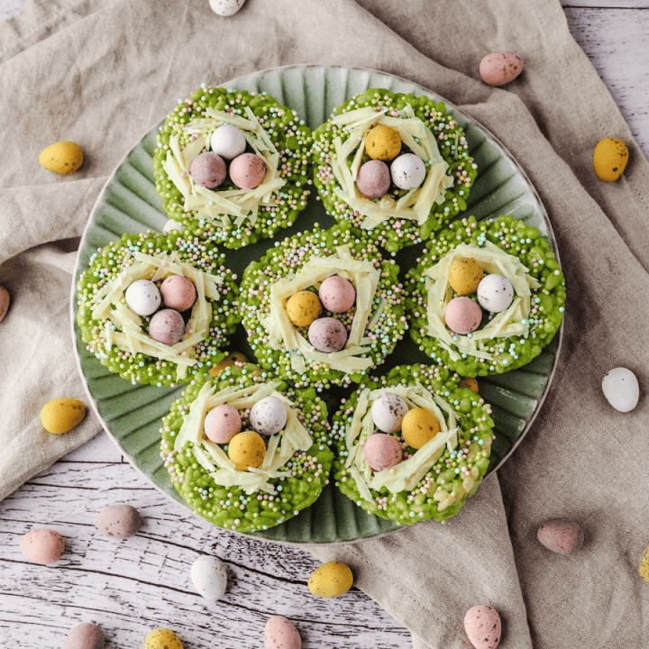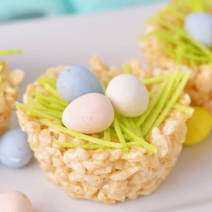 Are you looking for an easy treat to serve during the Easter season? These Rice Krispie treats are perfect for Easter because they look like little birds’ nests.