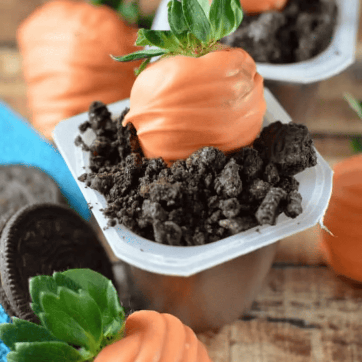 Make this Oreo dirt pudding with pudding cups, Oreos, and strawberries. These Oreo dirt cups are the cutest Easter treats you’ve ever seen!