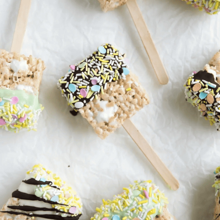 Easter Rice Krispie Treats, dipped in white and dark chocolate and fun, festive sprinkles, are the sweetest treat ever!
