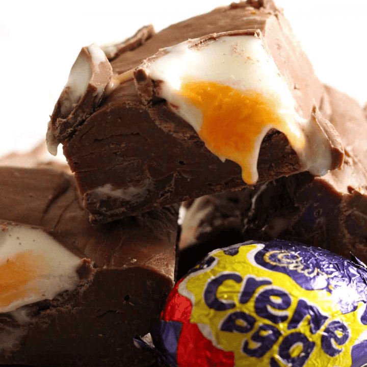 This easy Creme Egg fudge is made with just 3 ingredients. It's rich and chocolatey and packed full of Cadbury Creme Egg pieces.