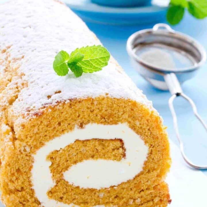 A light, fluffy pumpkin sheet cake rolls around an amazing cream cheese frosting. This fall dessert is a show-stopper and perfect for a dinner party or company!
