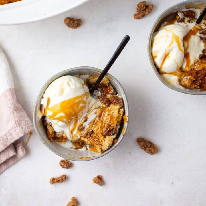 Pumpkin caramel dump cake is about to become your new favorite pumpkin treat. Serve while still warm with vanilla ice cream and a healthy drizzle of caramel sauce! Easy to make and perfect for a quick fall treat.