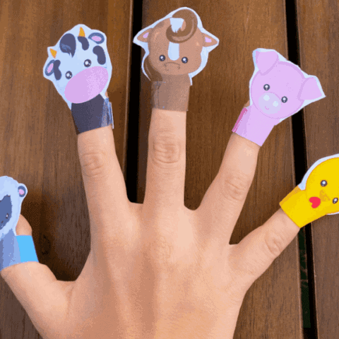 Finger puppets don’t get much simpler than this. Simply print the template, cut out the rings, and glue them together. Then, let the barnyard fun begin! Kids will love mooing, oinking, and clucking along with their new animal friends.