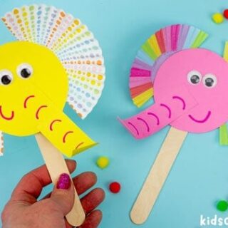 Grab some cupcake liners and turn them into a playful elephant puppet. The more colorful the liners, the sillier and more fun the results.