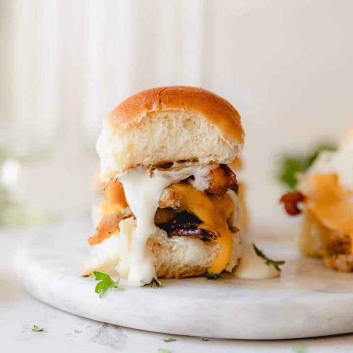 These little sammys are piled high with bbq chicken and bacon for a really filling option in a tiny package.