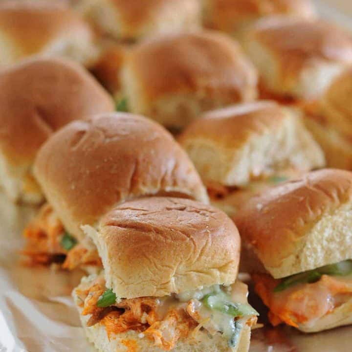 Get all the buffalo chicken flavor you crave with these little sandwiches! Pair these with celery on the side for a complete meal that is fun to share with friends.