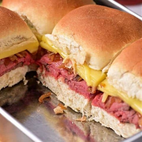 Sweet Hawaiian rolls are just the place to tuck tender roast beef. These sliders are amazing.