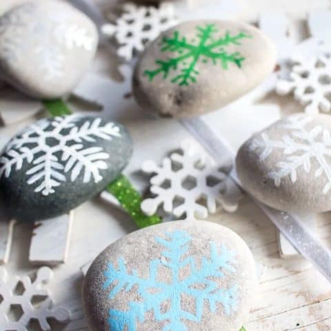 Bring a bit of winter indoors with these simple yet pretty painted rock snowflakes. They’re a great, inexpensive way to decorate for the winter season. Or use them as napkin weights for your winter tablescape!