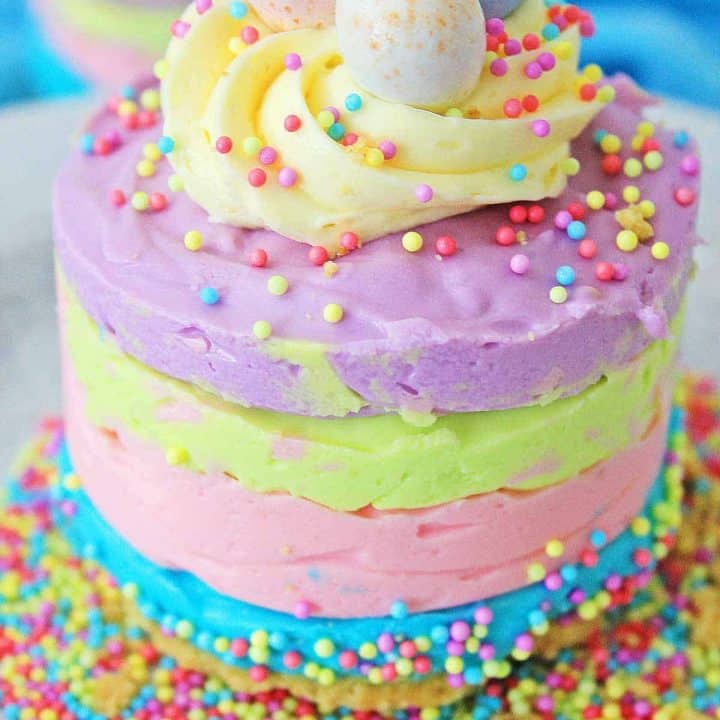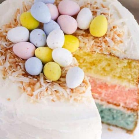 This pastel layer cake is so pretty! Add candy eggs to the top for a seasonal sweet everyone will admire.