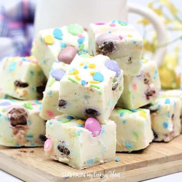 Add any seasonal sprinkles you like to this easy easter fudge. The results are sure to be the cutest thing you have ever eaten!