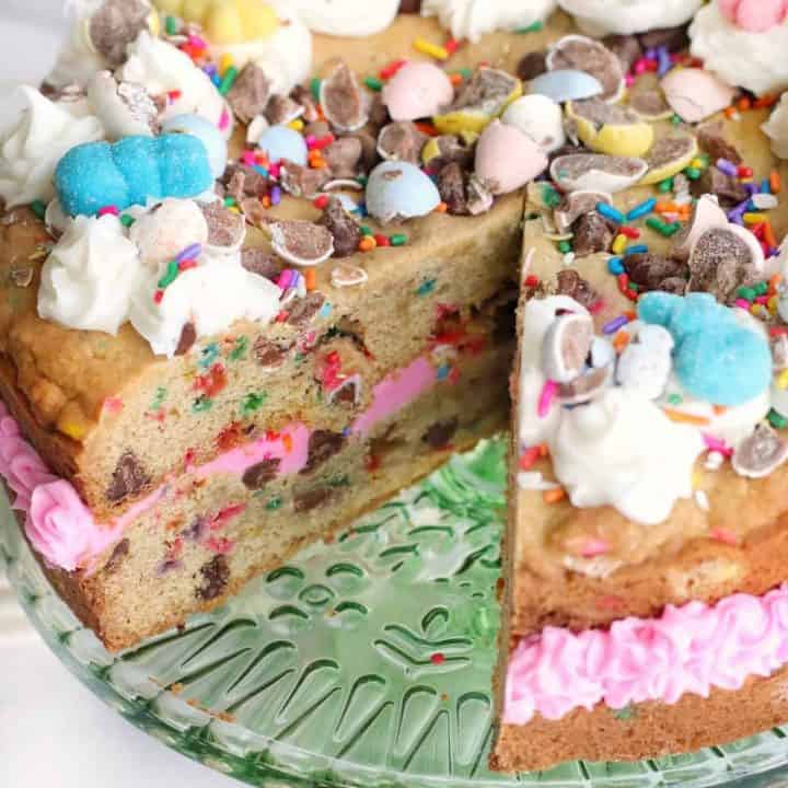 Add some candy and chocolate chips to a cake, and you have an epic Easter treat that everyone will love.