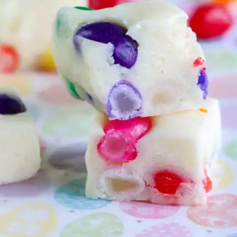Jelly beans are perfect in this fudge recipe that is colorful, sweet, and so much fun to eat.