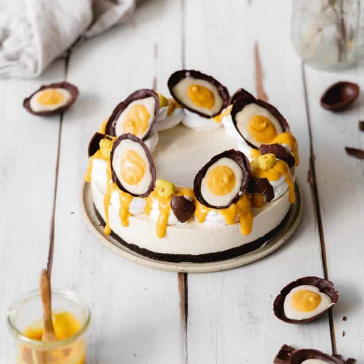 This cheesecake has all of the vibes of a creme egg in a package large enough to share with the whole family.