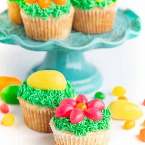 No need to make a fuss when decorating those Easter cupcakes. Adding a few jelly beans is the perfect touch.