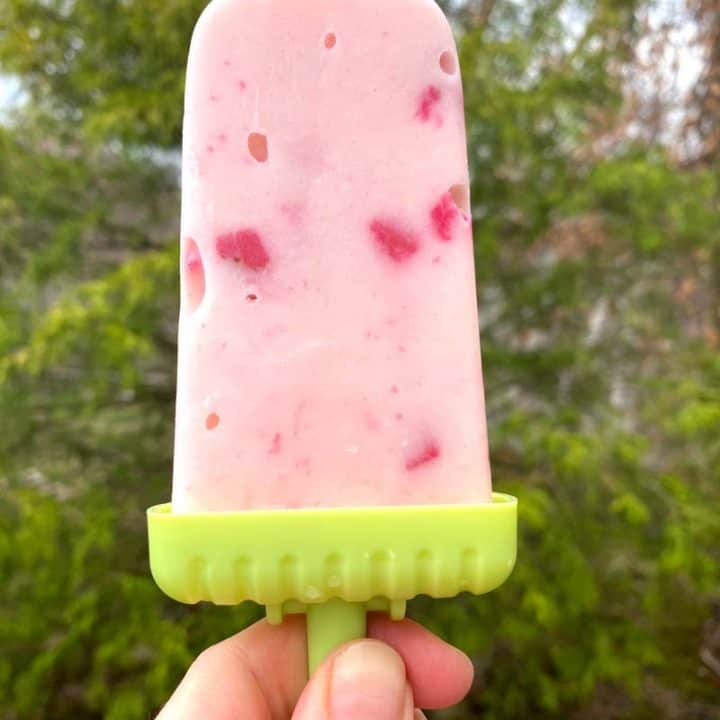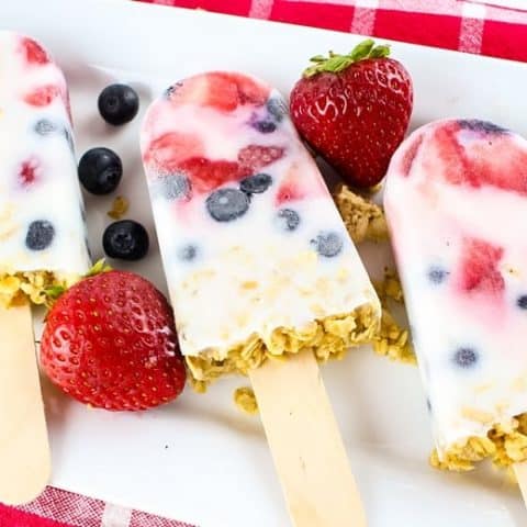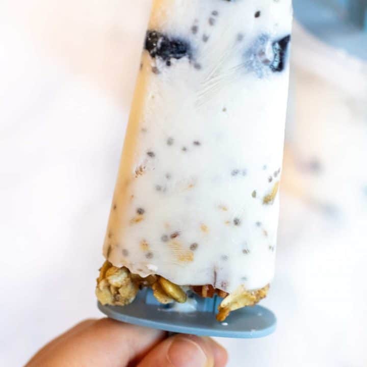 These easy yogurt popsicles are packed with fresh berries and granola, making them a tasty frozen breakfast to enjoy on-the-go on busy mornings.