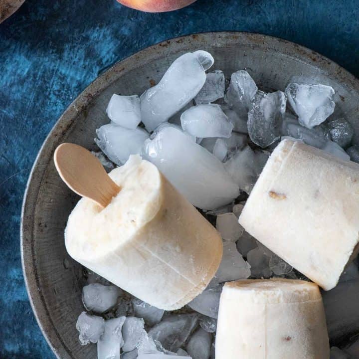 Only three simple ingredients are needed to make refreshing, sweet, and tangy Peach Yogurt Popsicles! A frozen smoothie on a stick is a great way to kick off hot summer days (yes, breakfast) or for a more wholesome treat anytime. No fancy popsicle molds are needed!